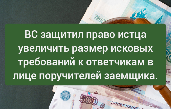 ВС защитил право истца увеличить размер исковых требований к ответчикам в лице поручителей заемщика.