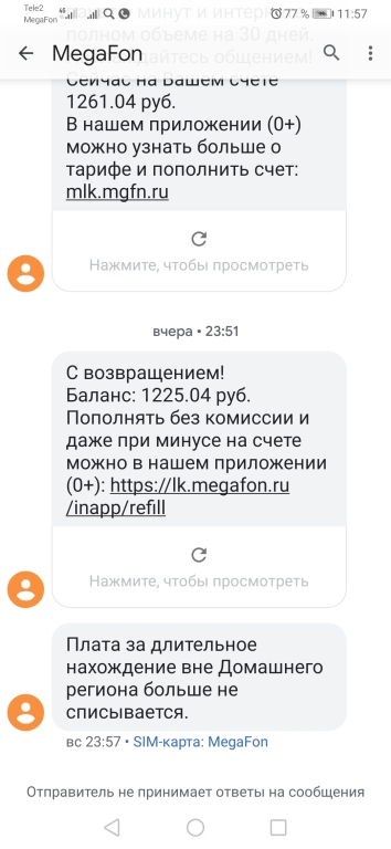 Здравствуйте! Пожалуйста, напишите о возникшей ситуации нам в личные сообщения ВКонтакте (vk.com/megafon), Facebook (facebook.com/MegaFon.ru) или Твиттер (twitter.com/megafonru). Обязательно разберемся в Вашем вопросе!