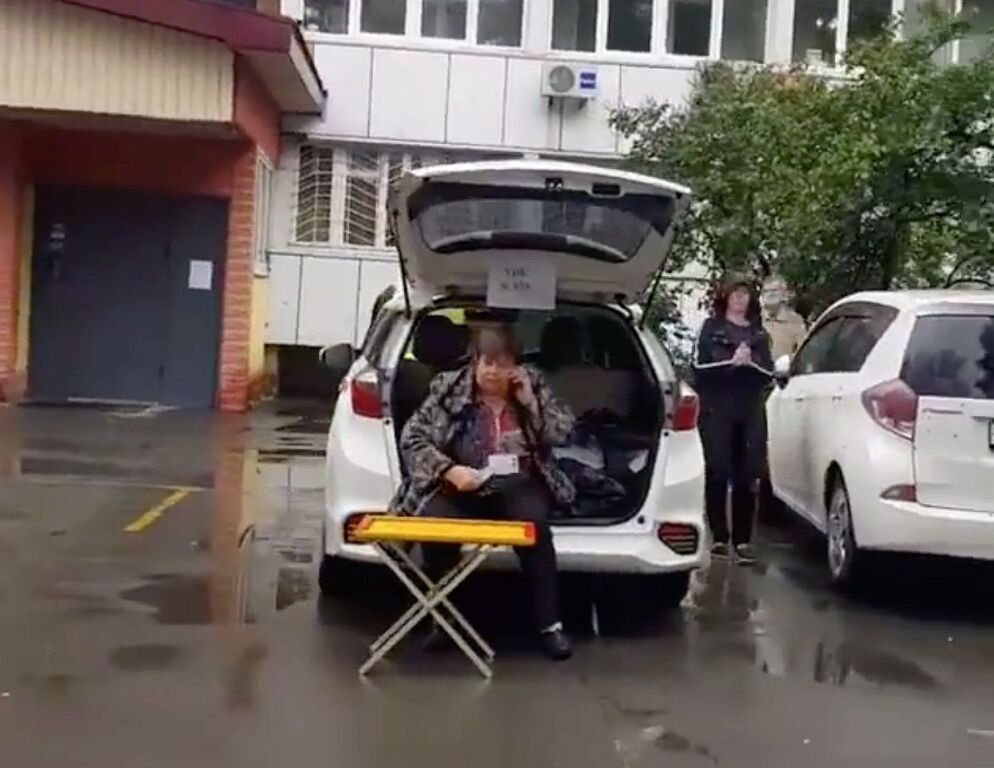 "Мне сейчас прислали, что есть жалобы на выездное голосование. В сети распространяют, что голосовать на лавочках и багажниках машин незаконно. Простите меня, не голосует никто у нас на лавочках и багажниках машин, никто не голосует в палатках. Только навесы лёгкие на воздухе. Никаких голосований на лавочках и багажниках не предусмотрено и не будет. И всё голосование вне помещения проходит в присутствии наблюдателей"