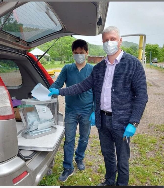 Не совсем понял, что здесь не так? Это организовано для того, чтобы не толпится 1 июля на избирательных участках. По желанию люди могут проголосовать около дома на свежем воздухе, благодаря мобильным избирательным участкам. В условиях пандемии эта правильная мера.
