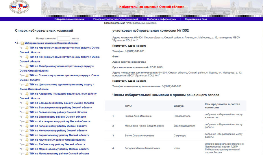 Позже выяснилось, что Ганева является главой УИК № 1352. Соответствующая информация есть на сайте избиркома Омской области.