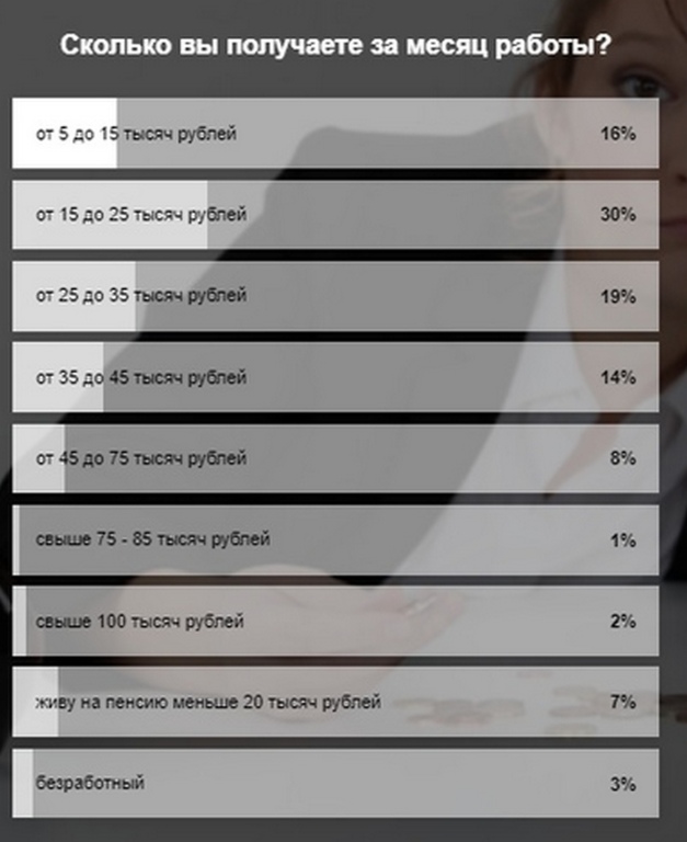 Выяснилось, что большинство живут на 15 000 — 25 000 рублей. Так ответили 30% опрошенных.