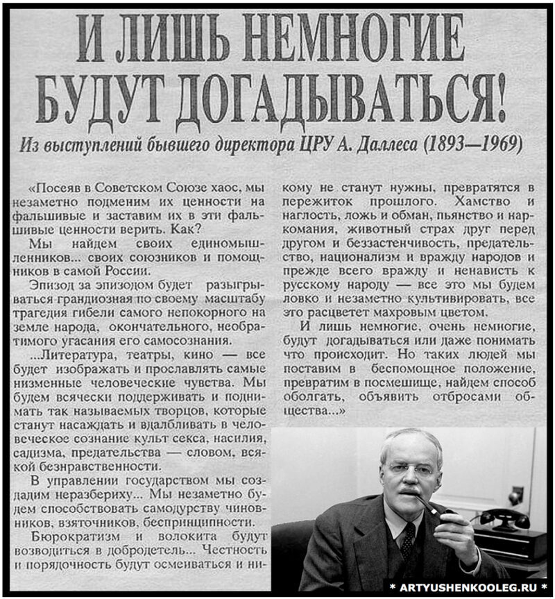 Это не доклад, это слова сказанные Аллесом Даллесом в Конгресе США в 1945 году перед разгромом Фашиской Германии.