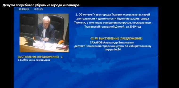 На заседании гордумы Тюмени депутат от «Единой России» Александр Захаров заявил, что полиция должна «убрать с дорог инвалидов и попрошаек». Парламентарий считает, что эти люди портят облик города.