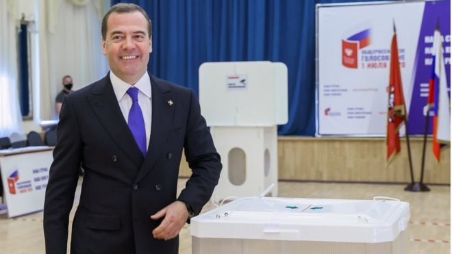 Утром четверга начали появляться первые фотографии с избирательных участков. Большинство из них имели всем привычный вид. В такой обстановке, например, голосовал лидер "Единой России" Дмитрий Медведев.