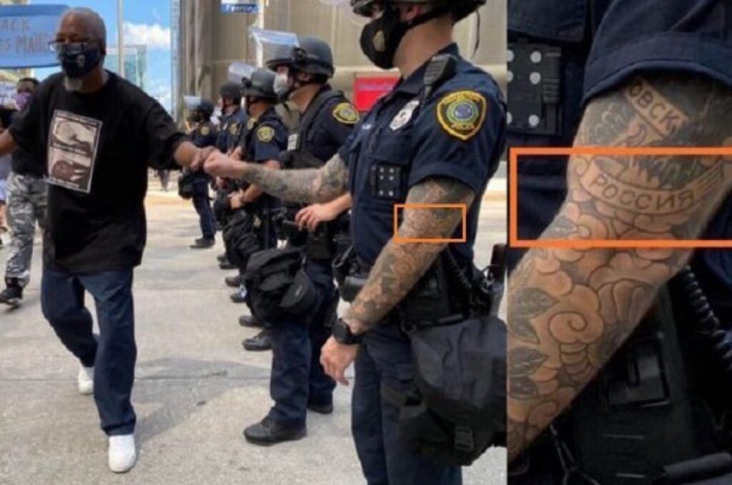 В первых числах июня текущего года пользователи заинтересовались снимком, на котором был страж порядка, на левой руке которого были нанесены на русском языке слова «Россия» и «Хабаровск». Примечательно, что протестующий в Хьюстоне, проходивший мимо ряда полисменов, дружески поприветствовал полицейского ударом кулака.