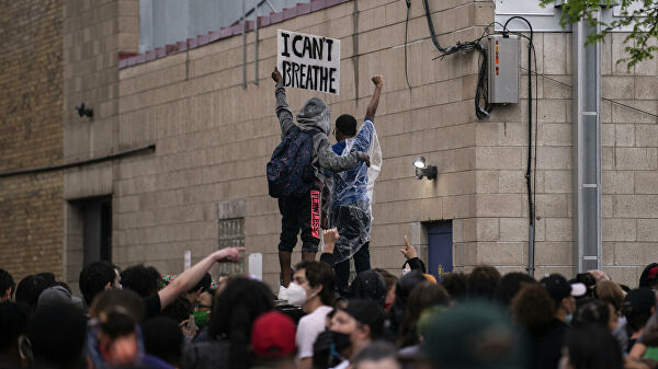 На улицах Миннеаполиса в штате Миннесота, где произошел инцидент, начались протесты, столкновения с полицией. Люди требуют: "Прекратите убивать чернокожих!"