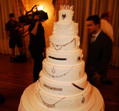Белоснежный ванильный торт из 7 ярусов украшен бриллиантовыми, рубиновыми, сапфировыми и изумрудными украшениями. Венчает его бриллиантовая тиара. Весь процесс был показан в реалити-шоу «Король кондитеров» на телеканале TLC.