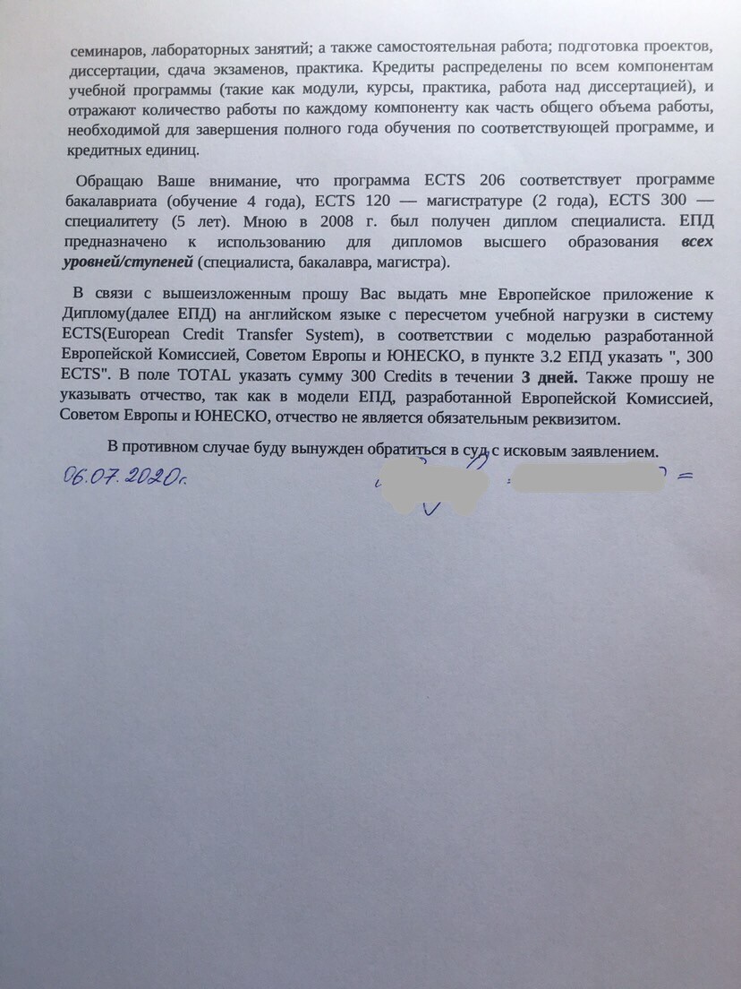 В противном случае буду вынужден обратиться в полицию о пропаже своего Диплома о высшем образовании 24.10.2020.