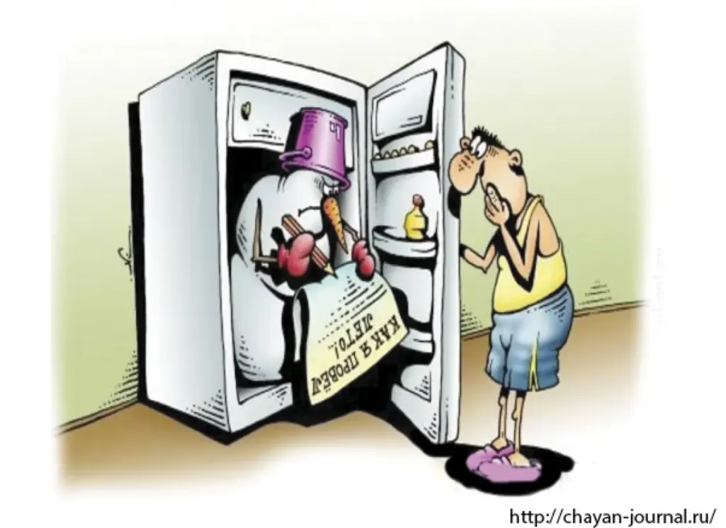 Вспомнил кое-как, что он ночью вытворял. Схватил холодильник в охапку и бегом в фирму по ремонту бытовой техники, пока жена не проснулась...