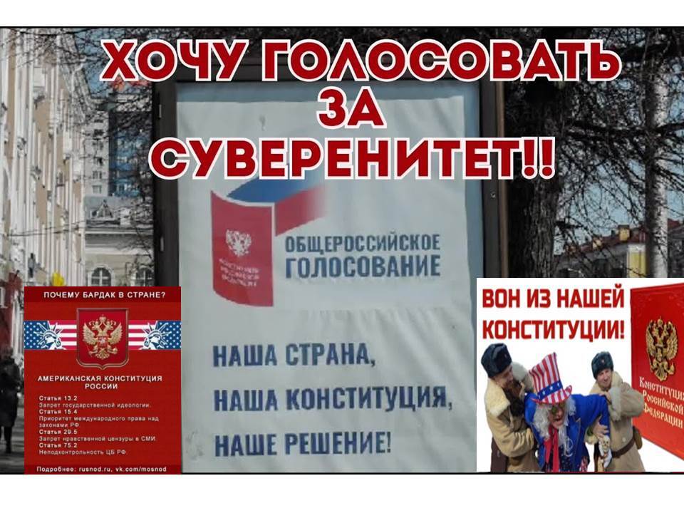 Елена Владимировна, спасибо. Вот именно здесь и зарыт казус. По Конституции, действующей до 1993 г. Новая Конституция принимается всенародным референдумом. А что реально было? То же самое, что и сейчас! Всенародное голосование вместо референдума. 93 г. Сложная обстановка в РФ. Я это пережила. А новая Конституция 93 г. усугубила ее., открыв двери иностранному капиталу и приняв ряд статей, которые, фактически, ставили РФ в зависимость от иностранного капитала, МВФ, ЕСПЧ и прочих международных организаций. Только суверенитет, приоритет Конституции РФ, Проведение кардинальных реформ, в первую очередь, в отношении ЦБРФ.