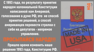Ту самую оккупационную Конституцию, принятую в 1993 году. Это закрепит статус России как независимого государства, которое не допускает вмешательства в свои дела и которое стремится к миру и на своей территории, и на всей планете.