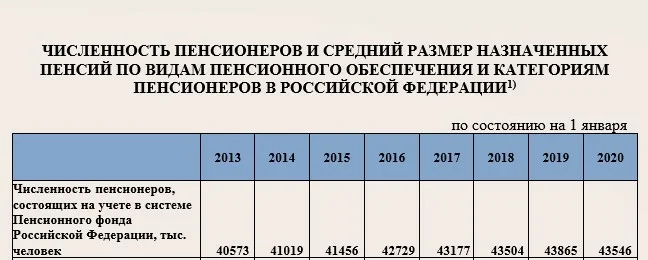 Максимальное значение числа пенсионеров в 2019 году было перед началом реформы - 43,865 млн. чел. Получается, что за 5 лет реформ их число снизится на