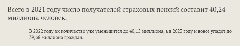 Любое скрытое намерение, рано или поздно становится известным. Так ив случае с пенсионной реформой. То, что старались скрыть теперь становится известно. Число пенсионеров неумолимо сокращается и никакой рост продолжительности жизни этому не помеха.