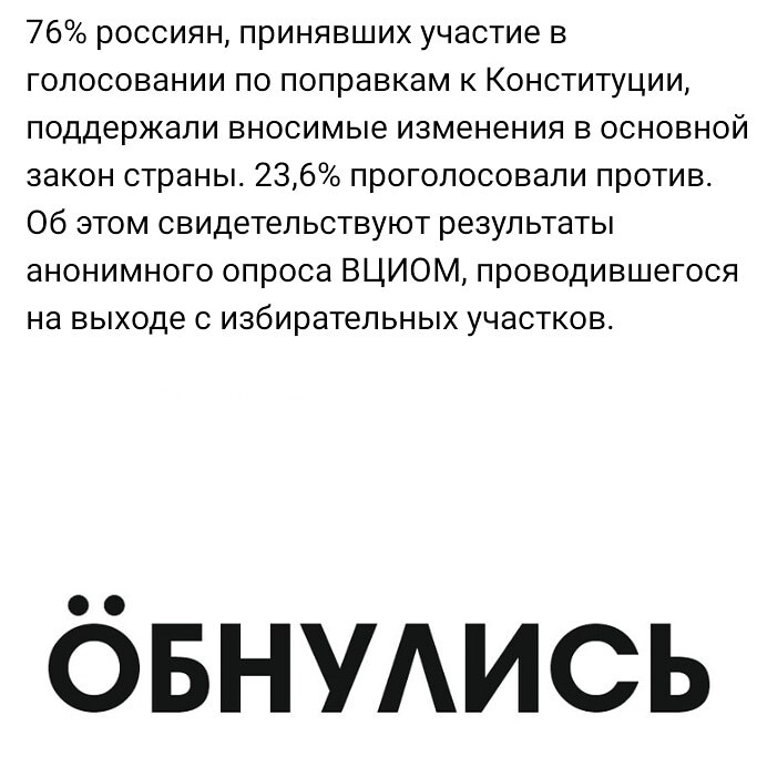 Особенно на фоне данных ВЦИОМ, которые показали, что ЗА изменения проголосовало более 70% россиян.