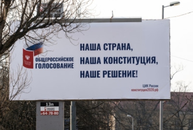 Разглагольствовать о современной жизни в России можно долго и упорно, вплоть до рукоприкладства... Но я замечу одно: когда вот такой плакат, как на фото, стоит в луже рядом с разбитой дорогой, вдоль которой стоят двухэтажные деревянные дома 20-х годов постройки - изменения Конституции выглядят весьма "мило".