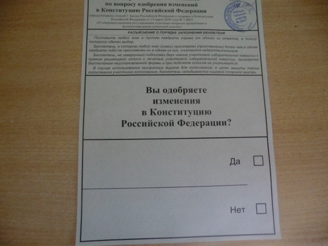Всем здравствовать, друзья. Хотелось бы верить г-ну президенту, ох, как хотелось бы, но вера за последнее время как-то поиссякла, я так думаю. Хочу, друзья, поделиться своим мнением насчет того, как проходит голосование. Сегодня включил телевизор, смотрю новости, где говорят, что уже проголосовало больше 45-ти %. Сегодня уже 30-е июня и если разделить на пять, то получится..., сколько ж получится, что явка-то не ахти! И я не выдержал - пошел на участок, где проходит это мероприятие, а это школа (хотел пойти в последний день). Подхожу, - ни людей, ни машин. Захожу внутрь, измерили прибором температуру, выдали маску, перчатки и ручку. Посмотрели - в списках моей фамилии не оказалось, послали на второй этаж. Комиссия расположилась в спортзале. Ни одного человека! Я впервые в жизни почувствовал какую-то фальшивую атмосферу, подошел к столу предъявил паспорт и я расписался в книге явки. Пока милая женщина листала эту книгу, я обрати внимание всего на три подписи, остальные страницы были пусты! И это за пять уже дней! Получив на руки бюллетень, я начал искать, где же кабинки. Увидев мое недоумение, мне показали на какие-то два изделия, сделанные мастерами, видимо на заказ. Если смотреть со стороны, то эти предметы больше походили на ящики для иллюзий, как у братьев Сафроновых. Человек скрывается за этим ящиком и видны только ноги по пояс. Ивот, проголосовав, естественно ПРОТИВ, подхожу к прозрачной урне и обратил внимание, что в ней бюллетений тридцать, не больше. Или каждый день проходит выемка или столько проголосовало за пять дней Ну и сам этот документ, посмотрите, а у вас такие же? Ну и наконец, народ все равно узнает правду, Раньше земля слухами полнилась, теперь слухами и интернетом. Ложь практически скрыть невозможно! Ну вот, друзья, прочтите мою публикацию и извините, если, что не так.
