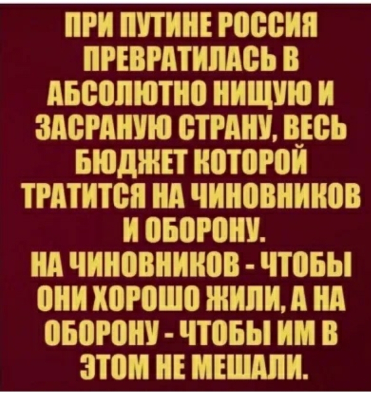 Вы хотите, чтобы убивали, как в 90-ые или повально была проституция на каждом шагу и наркотиками пичкали наших детей. Напёрсточники забирали ваши деньги? Бандитизм на каждом углу, что детей страшно выпускать. Вы вот за это? Или было отлично, когда наши умы, уезжали за границу? Читайте конституцию и не слушайте тех, кому плевать на ваше будущее и будущее ваших детей! А то всё правительство, других стран не имеет детей и им плевать на будущее и вы хотите этого? О чём вы?