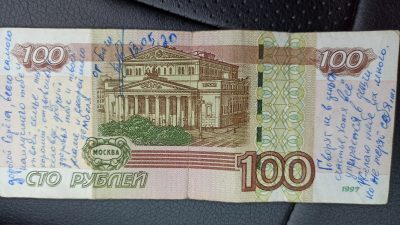 В Междуреченске неизвестный написал философское письмо для своего друга на сторублёвой купюре. Таксист, к которому попала банкнота, хочет разыскать владельца.