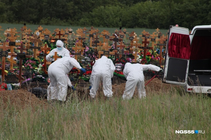 «Даже не удалось горсть земли бросить»: фоторепортаж с похорон омички, у которой был коронавирус.