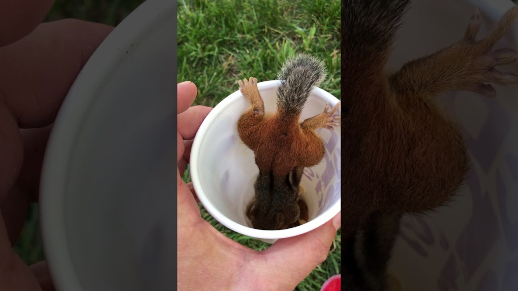 Бурундук прыгает в стаканчик с фундуком