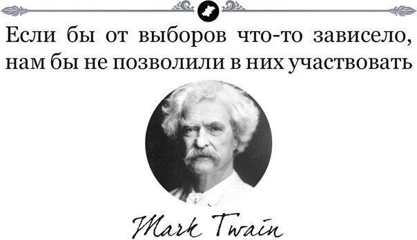 При всем уважении к автору статьи - Анне Владимировне, по вопросу голосования, я скорее соглашусь с Марком Твеном, чем с ней. К сожалению с недавних пор (а может и с давних, но, по крайней мере, при разрушителе России Ельцине были гораздо честнее выборы, если он фактически проиграл (даже в его штабе это признавали, как заявлял об этом и Д. Медведев) в 1996 г. Зюганову, который струсил и фактически отказался от поста Президента, объясняя, что он не хотел гражданской войны (беспринципная, позорная, трусливая позиция)) российские власти считают избирателей России быдлом, судя по результатам голосования 1 июля, справедливо. А от того, что каждый сфотографирует свой бюллетень ничего не изменится - бюллетени не именные и их не возможно идентифицировать. Допустим сфотографировал я свой бюллетень, затем пришел с жалобой в избирательную комиссию или в суд и заявил, что я голосовал против (покажу фото бюллетеня), но я уверен, что мой голос зачли, как проголосовавшего "за". Чем это закончится, думаю понятно всем. Пока народ не поднимет голову и не заявит громогласно о своем недовольстве и отстаивании своих прав, до тех пор эта олигархическая власть будет грабить и издеваться над народом, набивая свои карманы (в виде банковских счетов, недвижимости, драгоценностей и т.д.), обеспечивая безбедную жизнь не только себе, но и многим поколениям свои отпрысков.
