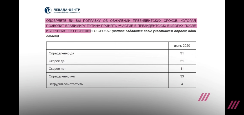 Фактически проценты по голсованию по данным Левада центра 45 за 55 против. Фактический рейтинг путина по данным Левада на май июнь 2020 г центра не более 25-30 % (интервью Андрею Караулова директора Левада центра. В интернете ютуб канал А. Караулова полное интервью находится там) . Был осуществлён массовый вырос бюллетеней 22-27 млн за.