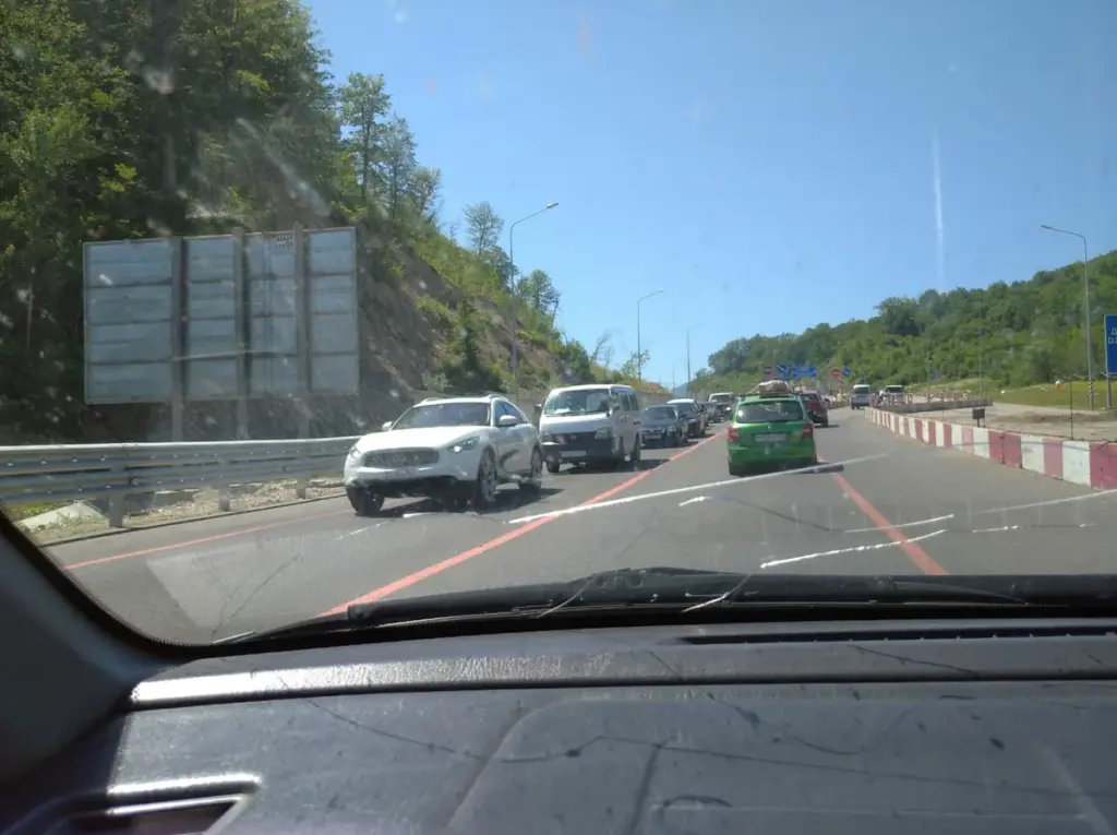 Как я писала, собрались мы на море за пятнадцать минут и выехали около 12 часов дня. В сторону моря пробок нет, хотя и очень оживленная трасса. До бухты наш путь составил 2 часа.