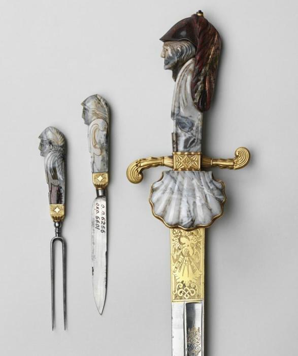 Есть здесь и оружие XVII века с рокайльным орнаментом (украшением из раковин и камней), принадлежавшее Елизавете Петровне. Она очень любила ездить верхом, охотиться, стрелять, и у неё была обширная коллекция личного оружия.