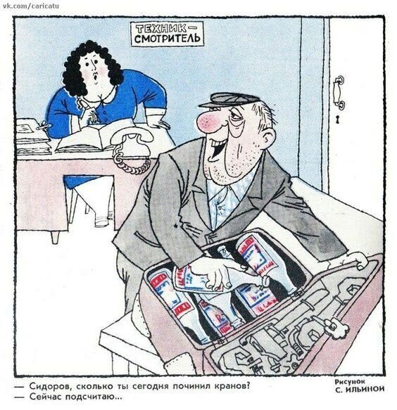 Верно, «герои» изображенные на этих рисунках вечны, вечны и человеческие «слабости». Но изменения в стиле и внешнем «оформлении» есть. Скажем, сантехники теперь водкой не берут, предпочитают работать по завышенному прейскуранту. А престарелые «папики» не переминаются перед юными любительницами «красивой жизни». К ним практически в открытую стоят в очереди)))