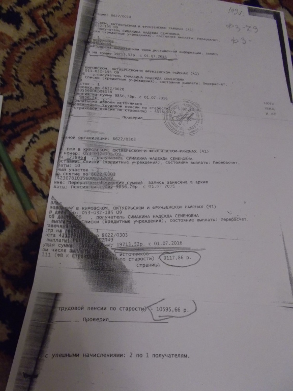 Есть законы, но ПФР занимаются махинациями и что делать? Мне в ПФР выдали заверенную копию выплатного дела в котором мне назначены Две пенсии, однако ПФР завели другое выплатное дело, изменили мне возраст и мою пенсию получают неизвестные лица, а мне доставляют выплаты из Несуществующей орг 020 Сбербанка 8622. Прокуратура скрывает преступные действия ПФР присылает фальсифицированные отписки. Из Генпркуратуры, якобы Н.Честных провел проверку, получила переписанную отписку из Прокуратуры Саратовской области? Адвокаты Не умеют делать расчет да и не хотят связываться. Не могу грамотно сделать расчет чтобы подать в суд, есть расчет ПФР - назначена с 01.07.2016 г в размере 19 771 руб из них= 9 117,86 выплаты, 10595,66 р трудовая по старости и и тут же назначена 9856 руб Как это понимать? ПФР завели точно Два (возможно три) выплатных дела, пишут изменили номер. На каком основании? Полагаю всё схвачено. Если сеть возможность, помогите сделать расчет в соответствии с законодательством и мои данным, Расчетки в деле представлены за один год, справка, что работала в Минобороны п\я ФГУП НПЦ"Алмаз" представлена. Изменили возраст! Вместо 62 лет указали на дату 25.04.2019 г 59 лет! В ПФР не могла доказать! - Ужас!