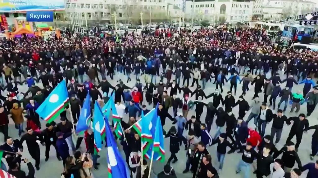 Якутские СМИ сообщили, что ролик с массовыми гуляниями сняли 27 апреля 2017 года в честь Дня Республики Саха. На кадрах из сюжета Первого канала видно, что часть людей — в куртках.