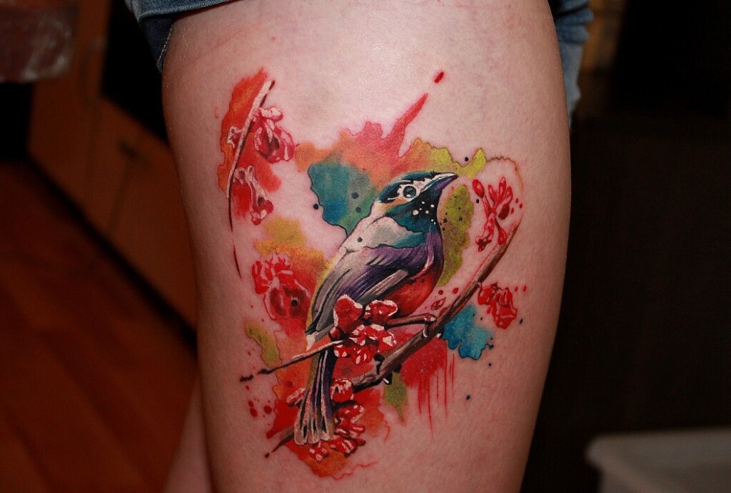 Мне импонирует Акварельное тату. Татуировка в виде, казалось бы, небрежно исполненного акварельного рисунка передает характер обладательницы.