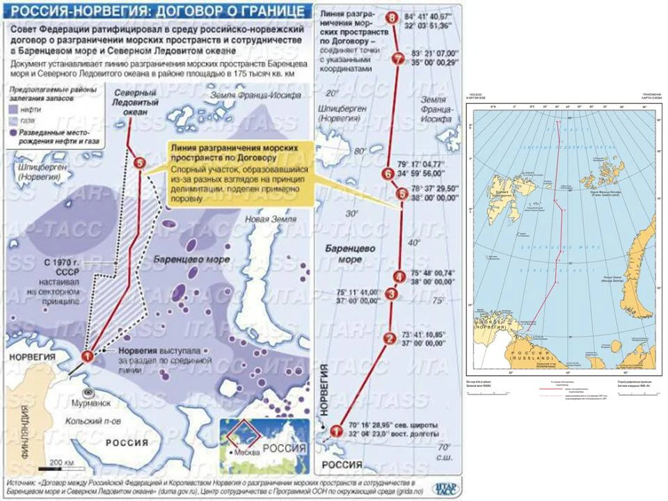 В 2010 России приходится идти на уступки и разделять пополам с Норвегией спорные территории. Договор подписали Дмитрий Медведев (тогдашний президент РФ) и премьер Норвегии Йенс Столтенберг. Да, тот самый, который с 1 октября 2014 года и поныне является генсеком НАТО. Который заявлял о "российской угрозе". Забавно, но "евроинтеграцией" России в Баренцевом море по принципу "уберите все отсюда, а мы вам на еду подкинем" руководил его родной отец Торвальд. Министр иностранных дел Норвегии в 1991-1993.