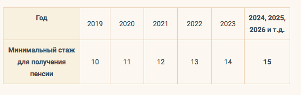 Определить, сколько стажа нужно для пенсии в каждом конкретном году переходного периода, можно по таблице ниже: