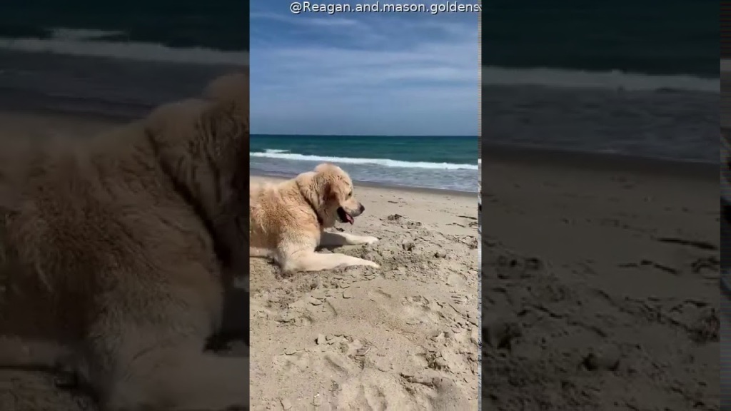 Occurred on July 5, 2020 / Frisco, North Carolina, USA "Mason, a 3-year-old English Cream Golden Retriever discovers sand crabs for the first time at the Out...