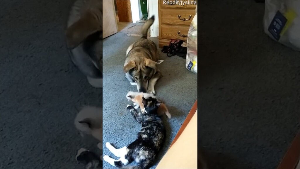 Adorable bonding time for the dog and kittens. Credit: Reddit/Jyslina Contact licensing@viralhog.com to license this or any ViralHog video. Make money from y...