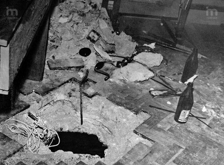 5 августа 1977 года из государственного банка Армянской ССР было похищено 1,5 миллиона рублей – адаптируясь к современным реалиям, примерно 2 миллиона долларов. Начиналось все так: два брата – Николай и Феликс Калачян – получили от наводчика ценную информацию: деньги находятся в хранилище на втором этаже. Стены и двери помещения бронированы, а вот потолок обычный, бетонный. Над хранилищем расположена комната отдыха персонала, в которую можно попасть через крышу соседнего жилого дома, примыкающего к стене здания банка. Охраны внутри здания банка нет, ведь деньги спрятаны в надежном хранилище под сигнализацией.