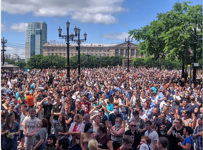 Митинг в защиту губернатора Хабаровской области - Фургала. Пришло, по подсчетам МВД 30-35 тысяч хабаровчан.