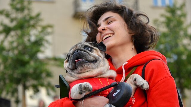 Собака выслуживается, стремиться показать, какая она верная и способная к выполнению любых человеческих желаний.