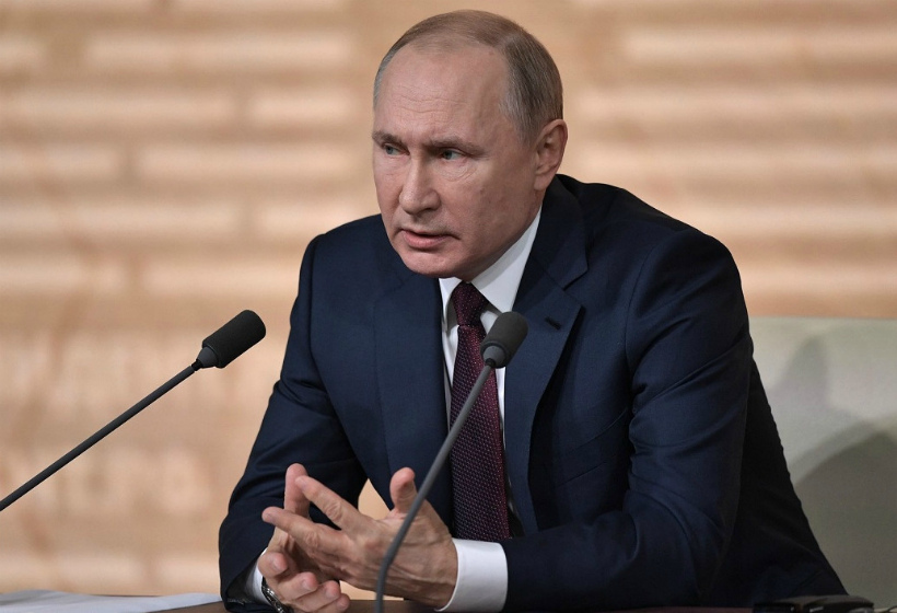 Ситуация произошла во время церемонии фотографирования главы государства. Сегодня в Кремле Путин вручил медали "Золотая Звезда" Героям России.