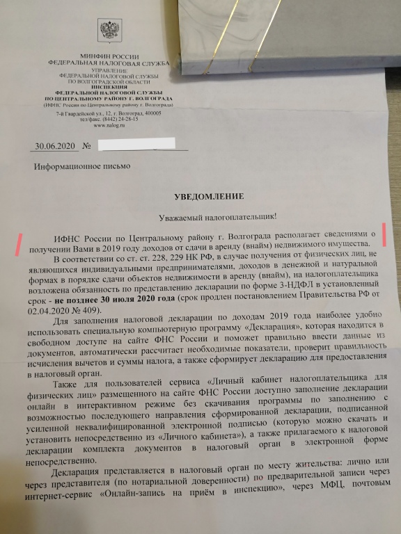 Во-первых, не стоит паниковать, так как если внимательно прочитать текст, то письмо носит сугубо рекомендательный характер, то есть предложение налоговых органов в добровольном порядке предоставить налоговую декларацию по форме 3-НДФЛ и заплатить сам налог «в случае наличия начисленного налога к уплате».