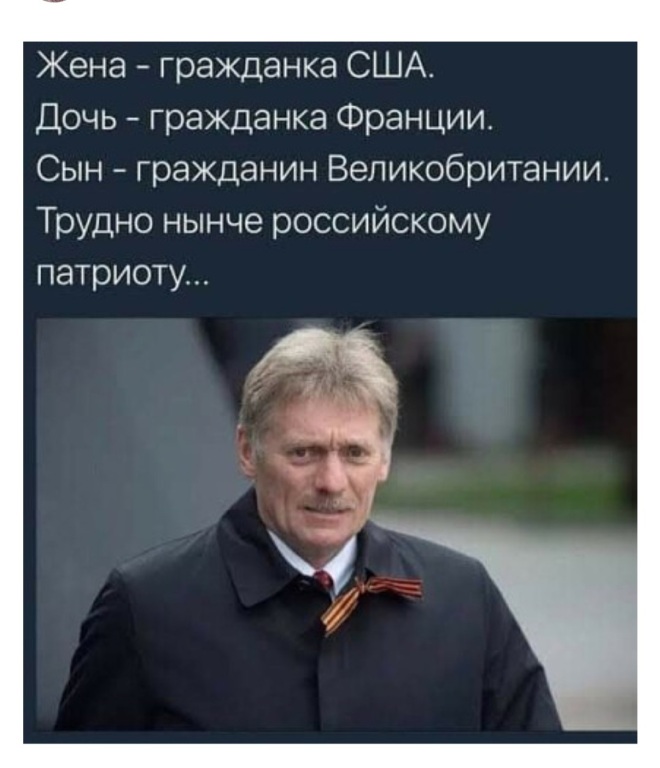 То есть, из того факта, что у Пескова дети за границей, Вы, Валерий, и 34 лайкнувших, делаете вывод, что Песков ненавидит Россию?