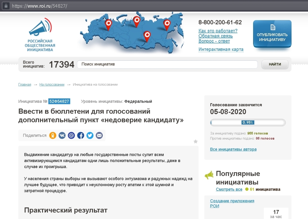 Инициатива - Ввести в бюллетени для голосований дополнительный пункт «недоверие кандидату»