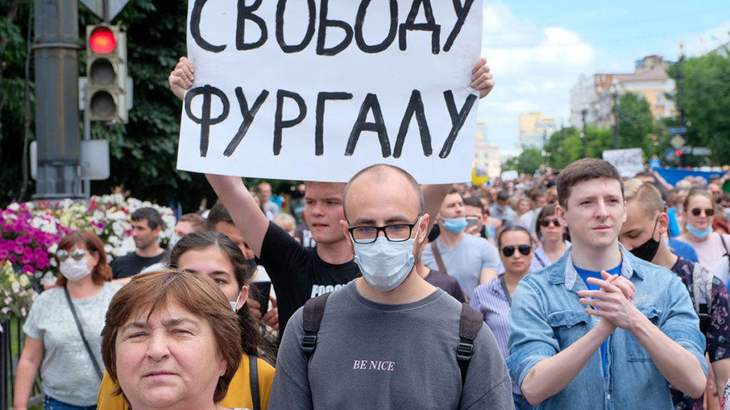Вслед за арестом Фургала на улицы Хабаровска вышла толпа до 35 тысяч человек. Толпа кричала «Долой Путина», и менты ее не хватали, потому что в Хабаровск не сообразили завезти ОМОН из других городов, или, например, из Чечни, что Кремль, несомненно, сделал бы, если бы предполагал такой размах митинга.