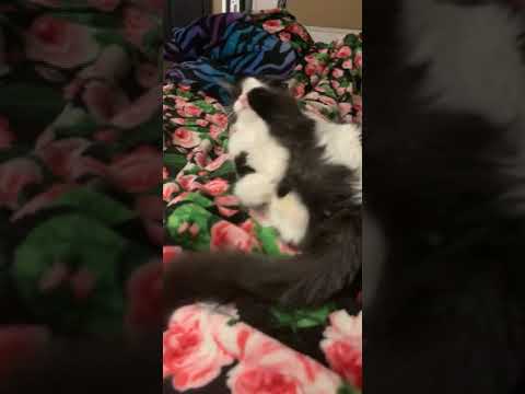 Котик атакует свою лапу