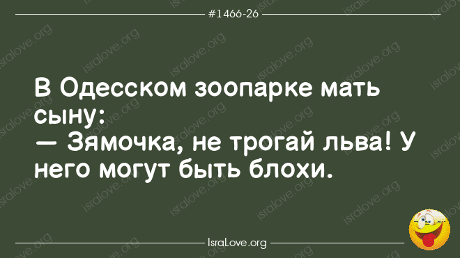 В Одесском переполненном автобусе. — Мужчина! Что ви об меня всё трётесь и трётесь, ви шо, меня хотите? — Ну шо ви. Нет, конечно же. — Ну так отойдите, может другие хотят!