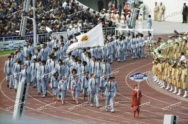 Торжественная церемония открытия. Олимпийская сборная Испании вследствие политической напряженности, возникшей вокруг Олимпиады-80, на параде участников идет под флагом МОК