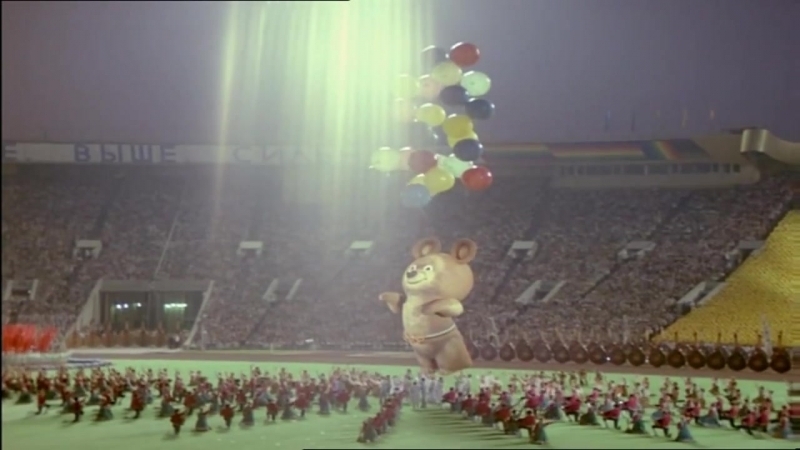 Закрытие XXII Олимпиады прошло 3 августа. Под звуки Олимпийского гимна спустили белый Олимпийский флаг. На экране художественного фона, выполненного из цветных щитов на трибуне под олимпийской чашей, появился образ олимпийского Мишки и слова: «Доброго пути!» При этом из глаза талисмана Игр выкатилась слеза. Ну и в конце под песню «До свидания, Москва!» в исполнении Льва Лещенко и Татьяны Анциферовой талисман Олимпиады улетел в небо на воздушных шарах. Позднее именно полет олимпийского Мишки будет тиражироваться как самый запоминающийся эпизод Олимпиады. И действительно этот момент в итоге стал символом московских Игр для тех, кто их не застал.