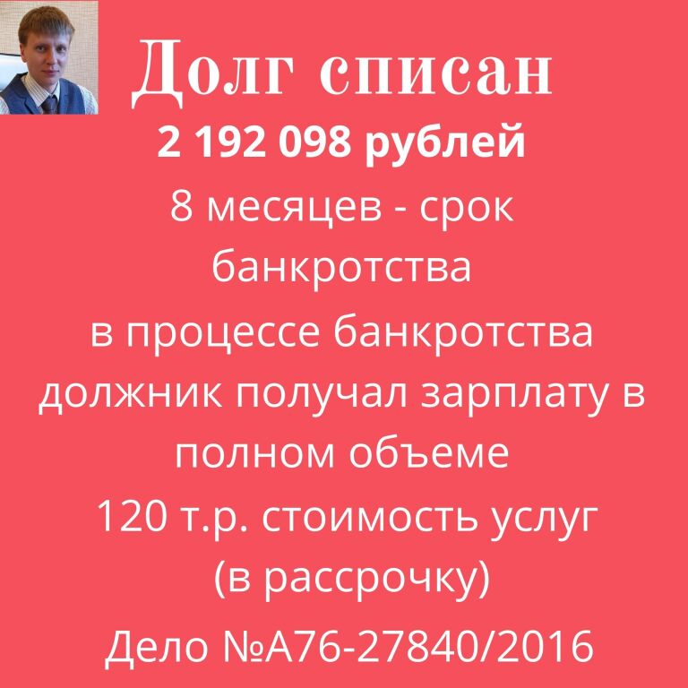 Хотя можно было изначально обратится к профессионалам и заплатить за простое дело (без сохранения имущества и без оспаривания сделок) 150 тысяч рублей, и пройти процедуру банкротства за 10-12 месяцев.